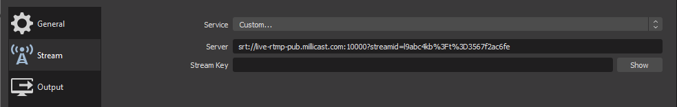 | RTMP Server | rtmp://rtmp-auto.millicast.com:1935/v2/pub/ |