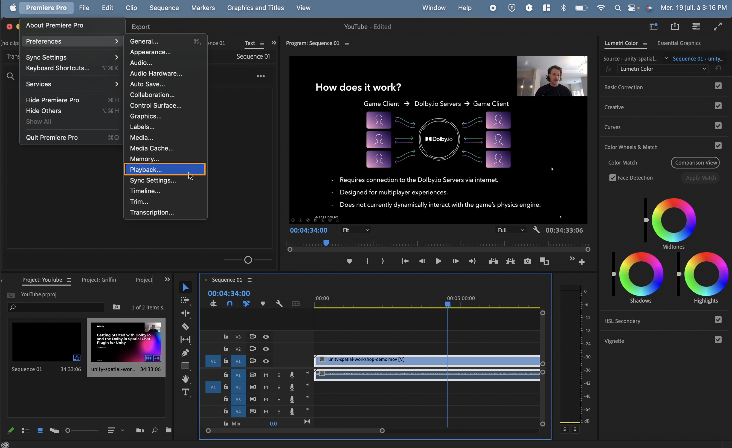 Begin by opening or creating an Adobe Premiere Pro project; from there, navigate to Premiere Pro > Preferences > Playback…